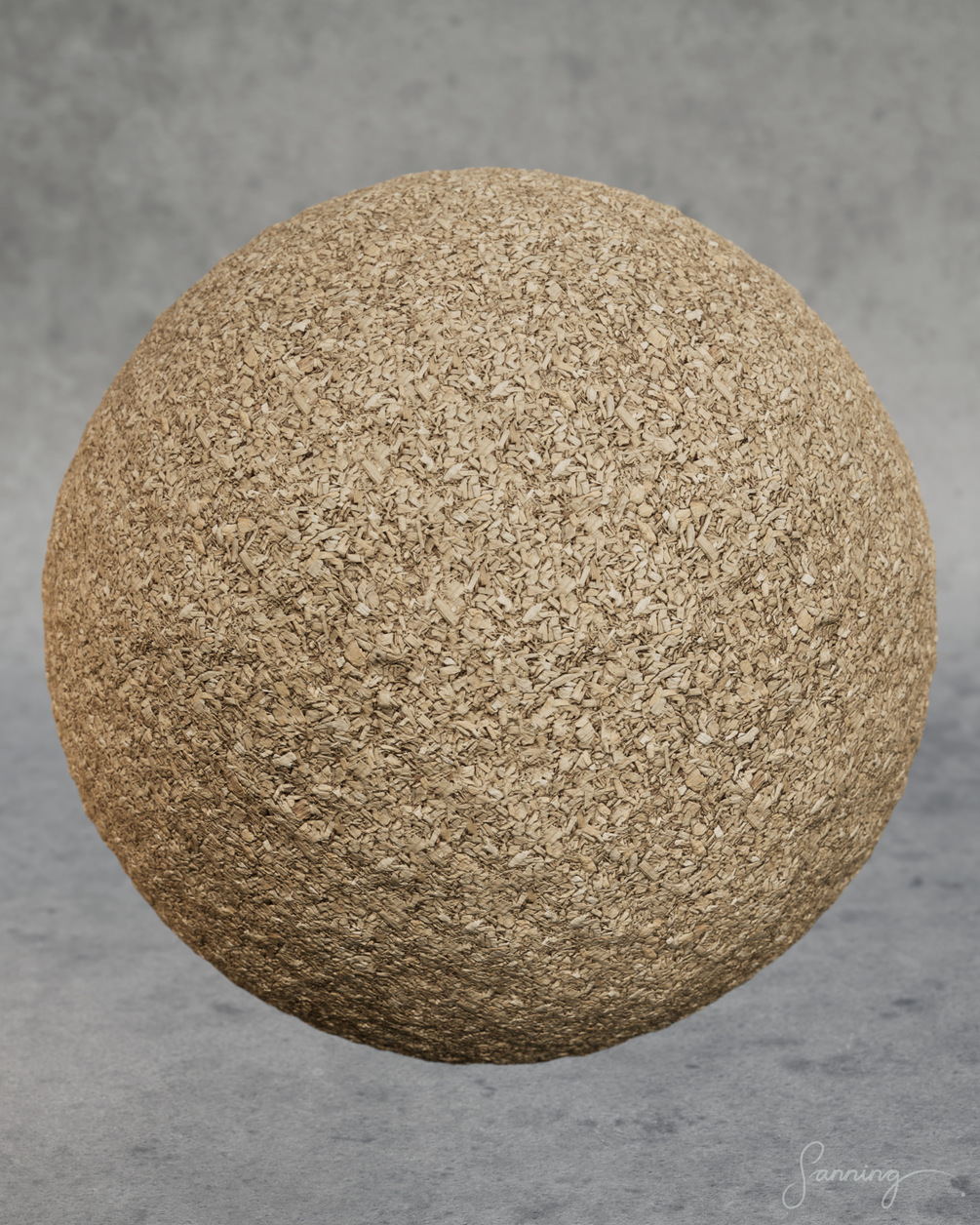 These textures for 3D visualization represent the material of woodchips. The material is captured with photography and its constituting textures are post processed in Substance Painter.